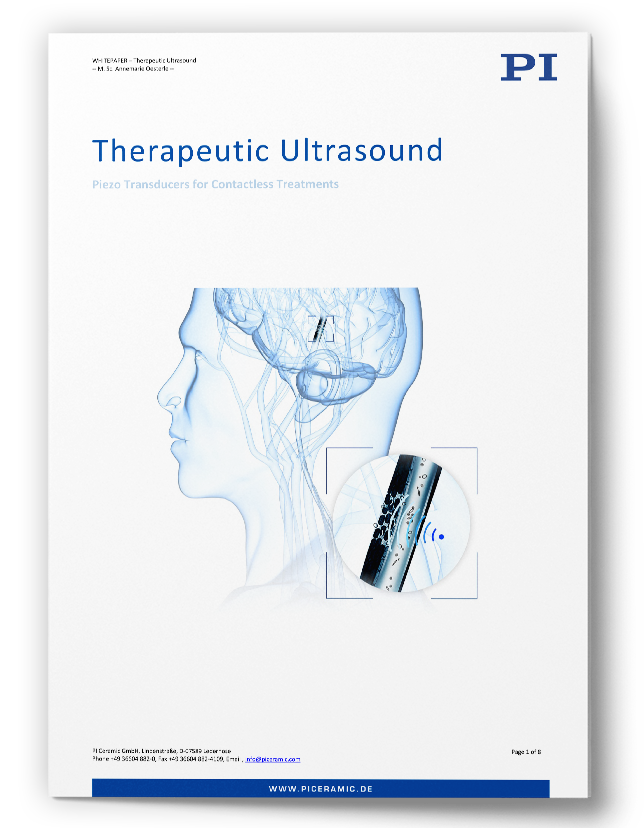 Ultrasound is a versatile technology that is becoming increasingly important in medical technology even beyond the established field of imaging. Especially during surgical procedures, the power of sound waves can be used to perform so-called incisionless surgeries. Piezoelectric transducers serve this purpose perfectly: Placed extracorporeal, they project an ultrasonic focus into the body. By absorbing the acoustic energy generated by the sound waves, tissue areas can be manipulated in a targeted manner, e.g. to destroy cancerous tumors or to enhance contactless drug delivery in a minimally invasive manner.