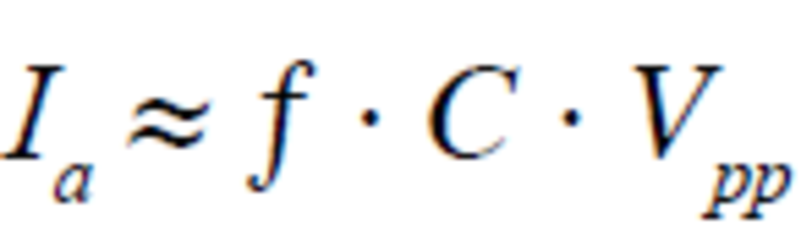 A secondary constraint that applies here is that the amplifier must be capable of delivering at least Imax = 2 Ia for the charging time, i.e. for half the period. If this is not feasible, an appropriately lower maximum operating frequency should be selected. For amplifiers which cannot deliver a higher peak current or not for a sufficient period of time, the following equation should be used for calculation instead: