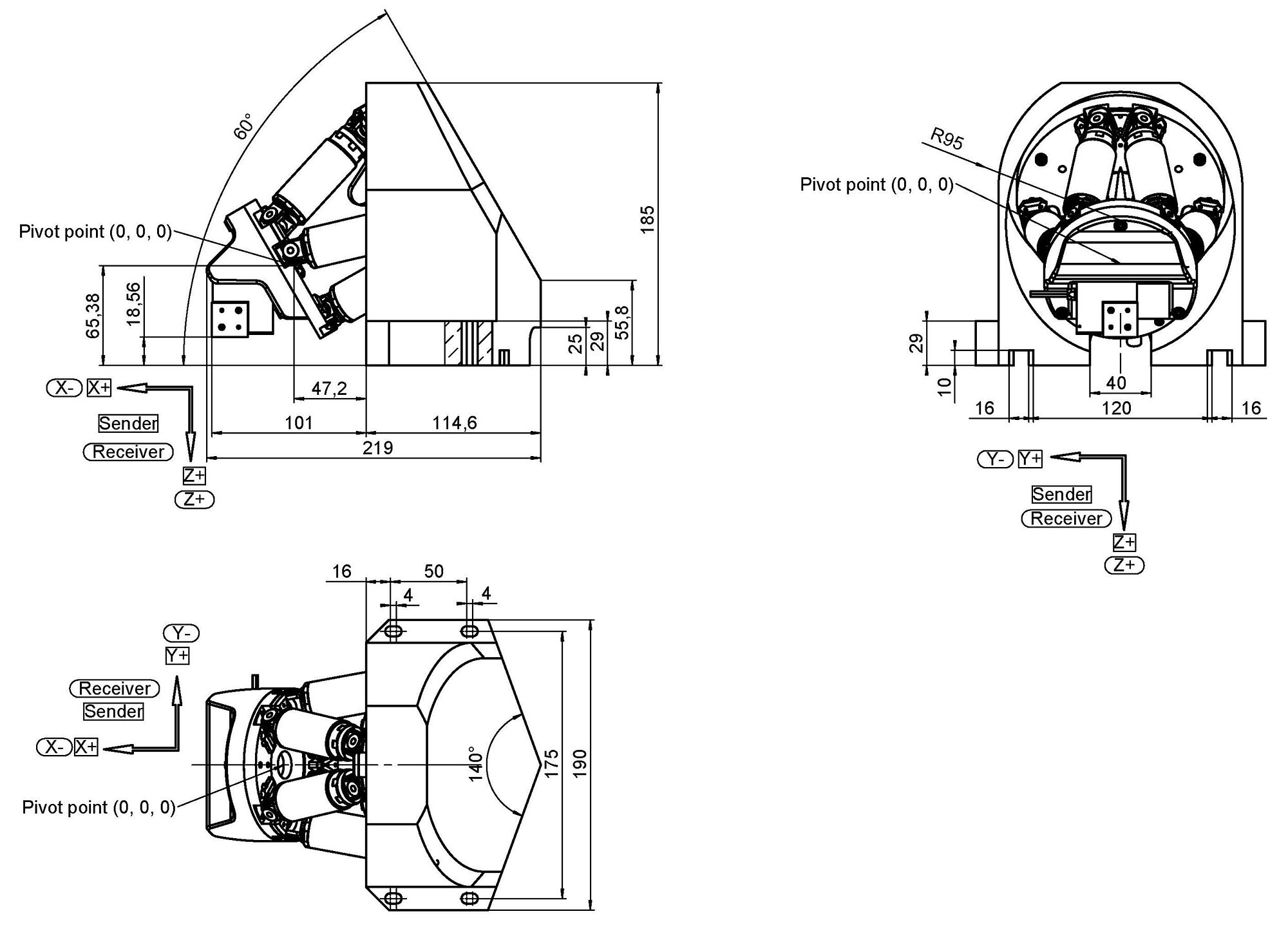Rotation range in θX, rough positioning | 29 ° | 29 ° | 20 ° | |