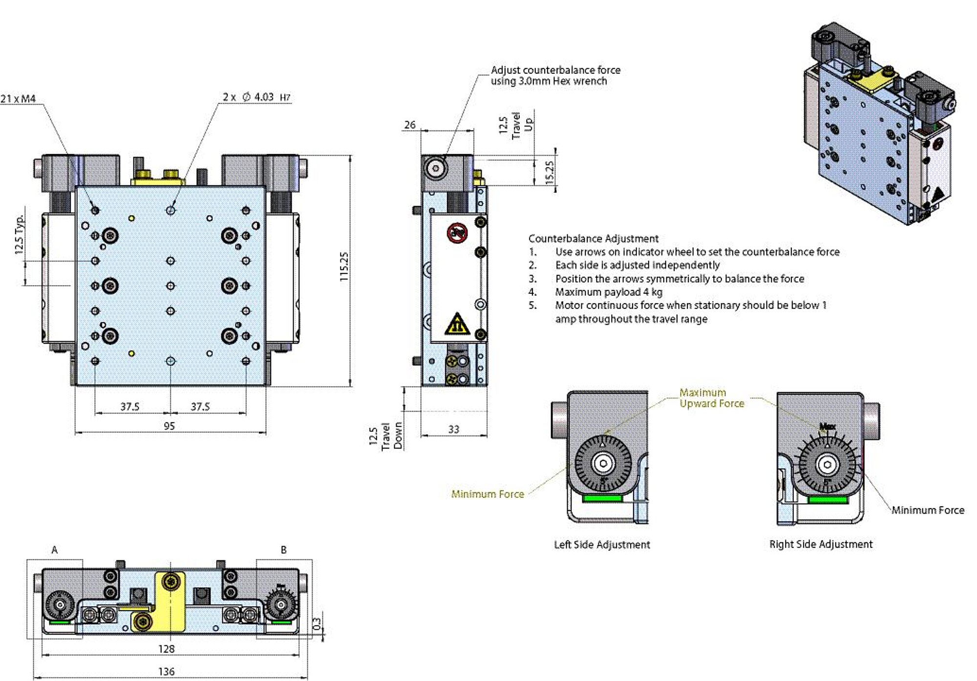 | Moved mass in Z, unloaded | 400 g | 400 g | 500 g | 500 g | |
