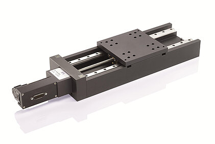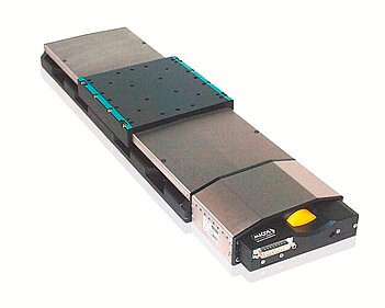 Standard stages are available in various load and precision classes for travel ranges up to 1 m. Miniature versions show footprints under 20 mm x 20 mm.