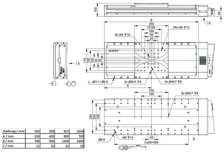 | Travel range in X | 305 mm | 305 mm | 508 mm | 508 mm | 815 mm | 815 mm | 1016 mm | 305 mm | 508 mm | 508 mm | 815 mm | |