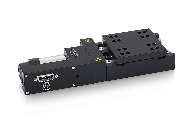 Linear stage; DC motor with ActiveDrive; 25 mm travel range; 200 N load capacity; 10 mm/s maximum velocity; trapezoidal-threaded spindle; incremental rotary encoder, 4000 counts/rev sensor resolution, A/B quadrature, RS-422