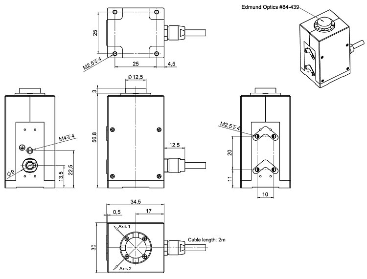 High-dynamics piezo tip/tilt platform; 35 mrad × 35 mrad rotational angle (θX × θY); SGS, direct position measuring; D-sub 37-pole (m); 2 m cable length; incl. mirror Ø 12.5 mm