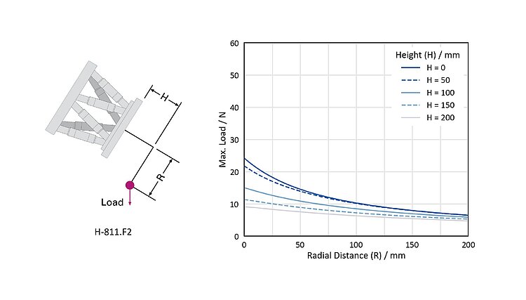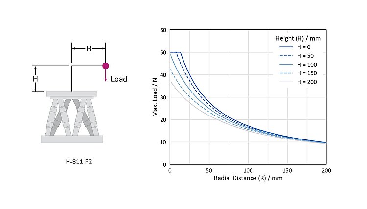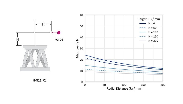 Note on maximum payload and maximum holding force: The specified values apply to the hexapod without the removable magnetic plate.