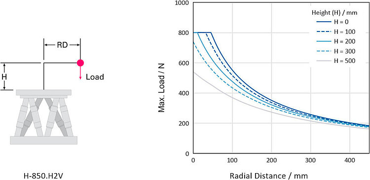 The hexapods suitable for vacuum of the H-850 series position loads of up to 80 kg with high precision and reliability. Heavy-duty precision bearings allow applications with long duty cycles. The H-850.V are suitable for vacuum environments to 10-6 hPa.