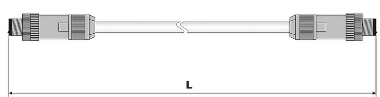 Power supply cable for hexapods, drag chain compatible, M12 m/f straight, 7.5 m