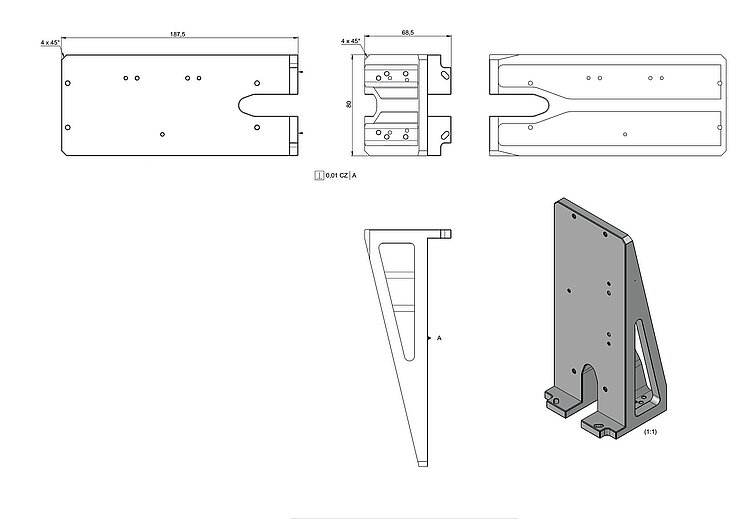 Mounting bracket for Z mounting of the N-332.24(Y) onto a N-332 linear stage; nickel-plated aluminum; including mounting kit