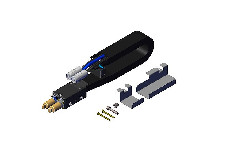 In XY assemblies consisting of V-412 or V-417 linear stages, the V-417.E1XYH drag chain takes over the cable management of the Y axis in X direction. For this purpose, the drag chain is mounted on the X axis.
